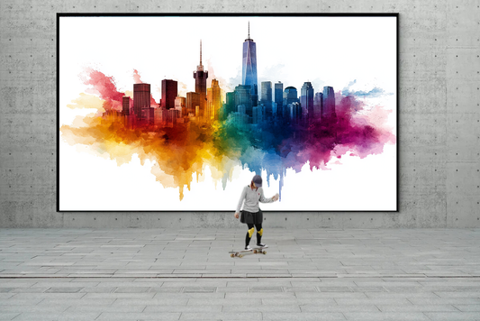 „Farbenpracht der Skyline“ – Ein Stadtbild in lebhaften Aquarelltönen