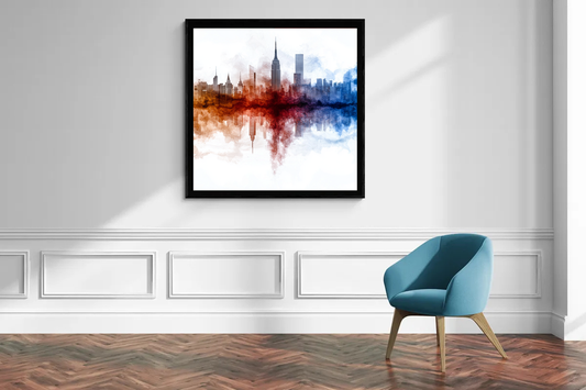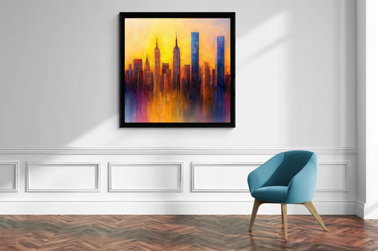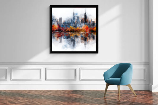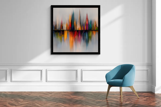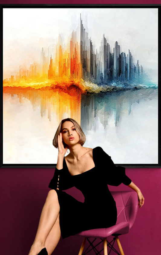 „Flammen und Wasser – Ein Spiegel der Stadt“ – Eine Skyline in lebendigen Farbwirbeln