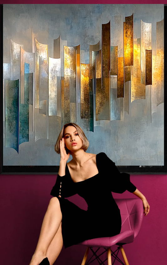 „Glanz der Stille“ – Abstrakte Skyline in metallischen Tönen