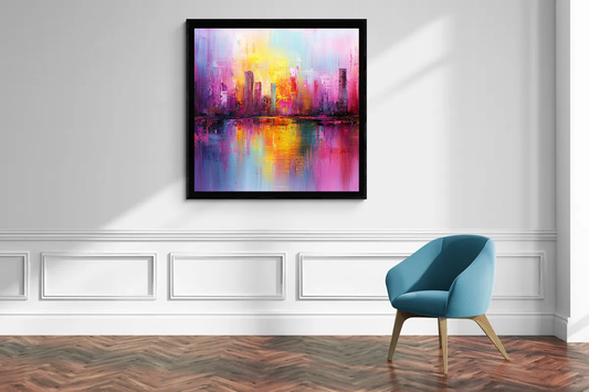 „Neonträume“ – Abstrakte Skyline in leuchtenden Neonfarben