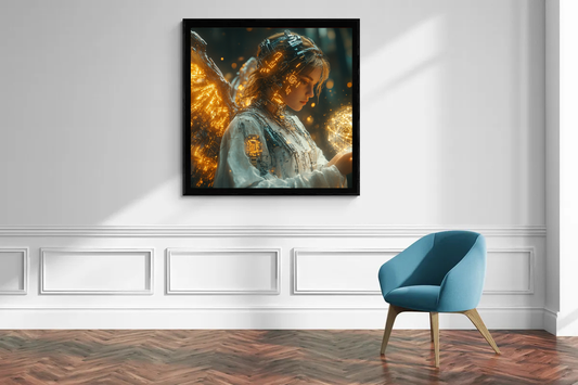 „Der Lichtwächter“ – Cyberpunk-Engel in goldener Pracht