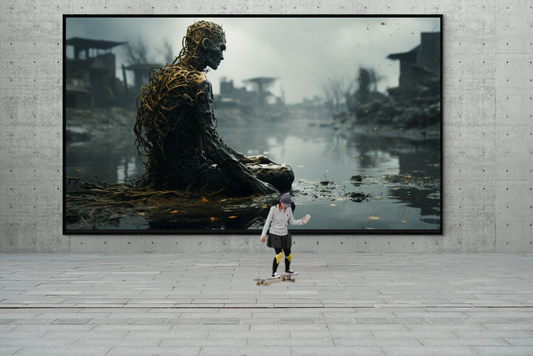 „Die letzte Meditation“ – Düsterer Kunstdruck im Postapokalyptik-Stil