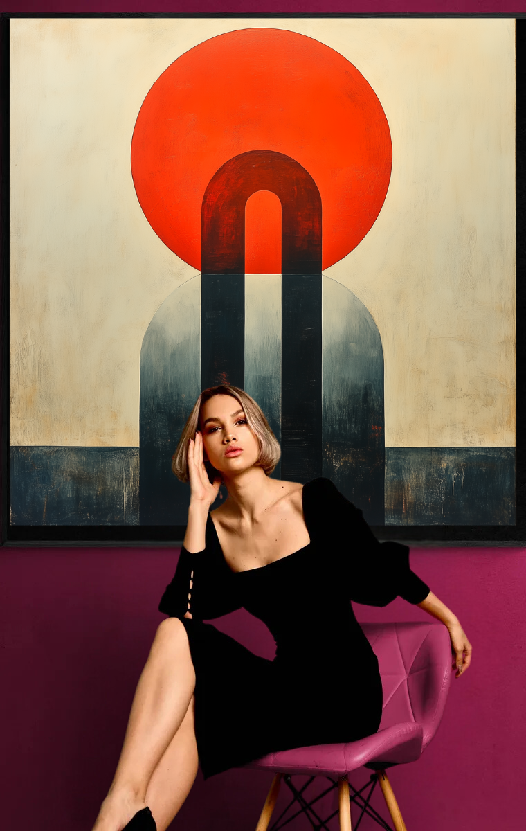 “The Gate to Eternity” is a powerful composition that creates a striking visual experience with minimalist forms and intense colors. The painting combines geometric precision with spiritual depth and invites the viewer to reflect on space, time and the symbolic meaning of transitions.