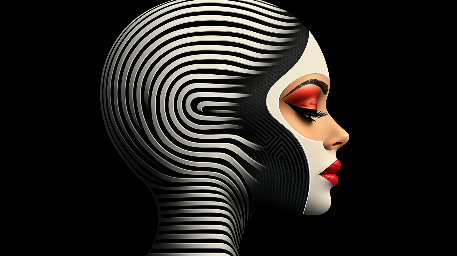 “The Hypnotic Muse” – A futuristic fusion of op-art and sensual expressiveness