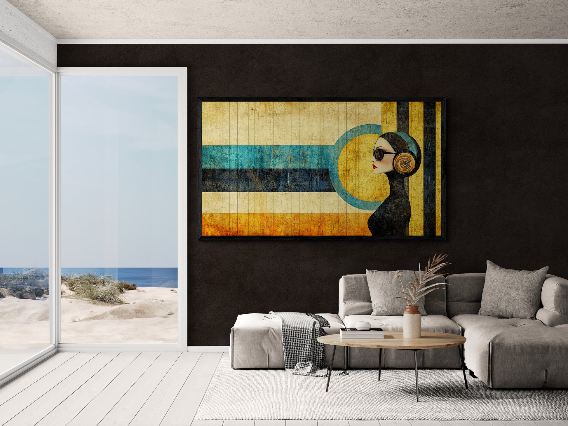 - The Woman's Profile: The woman's minimalist side profile symbolizes the connection between humanity and music. Her sunglasses and distinctive headphones represent her focus on sound while maintaining a modern, futuristic character.