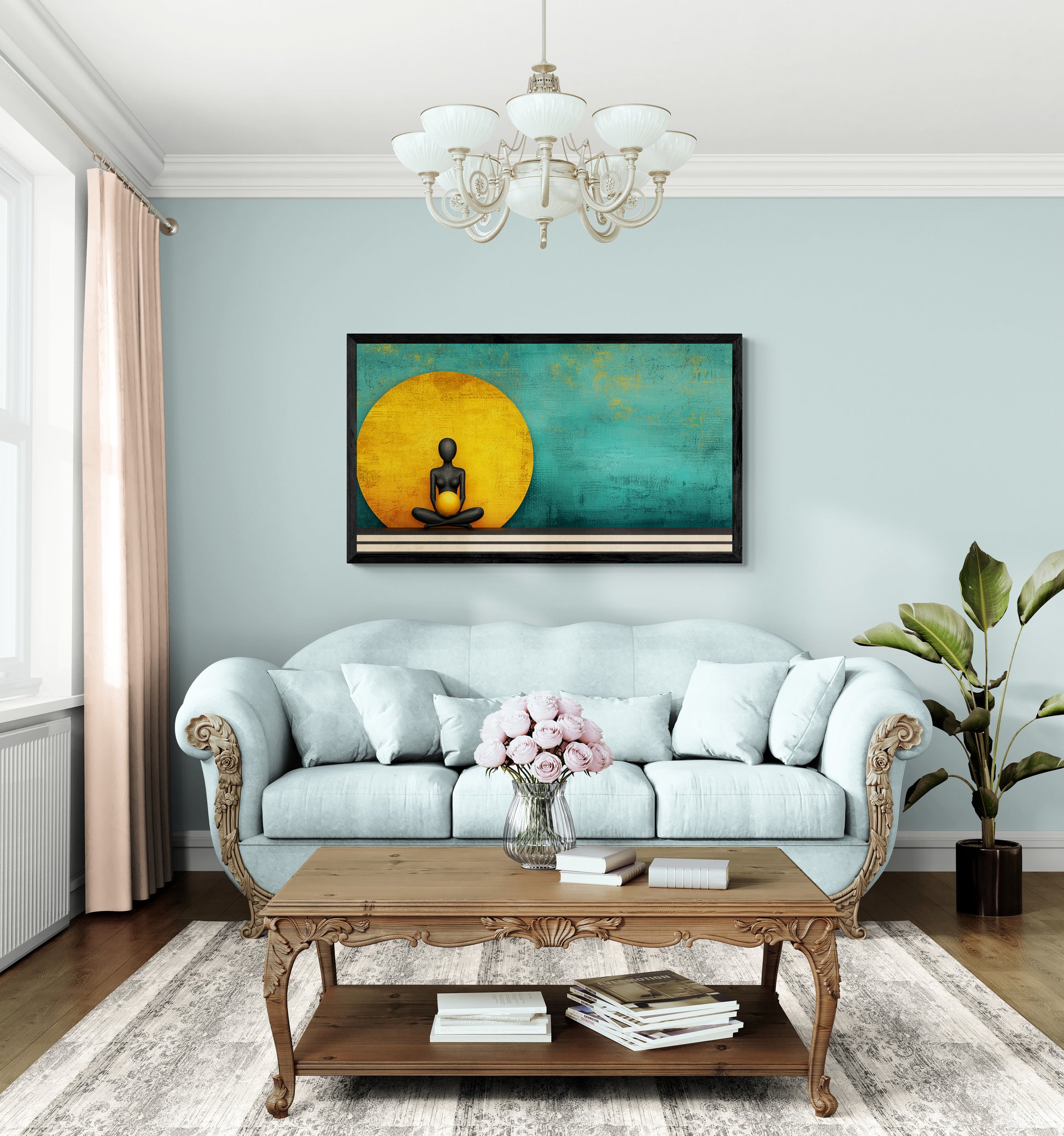 “Sun Circle of Serenity” is an art print motif that captures the essence of balance and inner silence in a reduced, yet meaningful imagery. The combination of subtle shapes, bright yellow and calming turquoise creates an atmospheric harmony that invites you to pause and meditate.