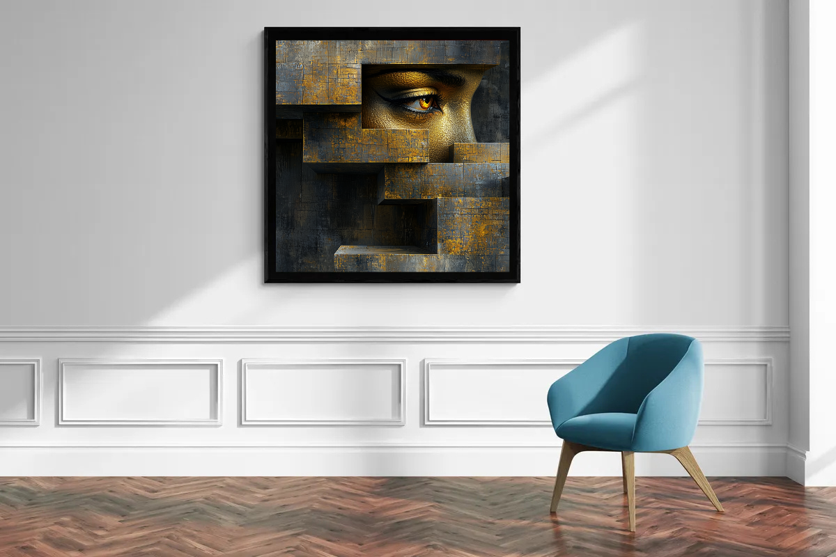 Mit „Das goldene Auge“ holen Sie ein Kunstwerk in Ihre Räume, das die Kraft von Wahrnehmung und Perspektive meisterhaft einfängt. Es ist ein Symbol für den Dialog zwischen innerer Einsicht und äußerer Realität – ein Meisterwerk, das zum Nachdenken anregt und beeindruckt.