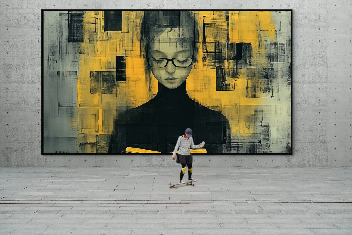 „Das Licht des Wissens“ erinnert uns an die unermessliche Kraft des Lesens und der Bildung. Es zeigt, dass Bücher das Potenzial haben, uns zu erleuchten und uns neue Perspektiven zu eröffnen, selbst wenn die äußere Welt dunkel erscheint. Dieses Kunstwerk feiert die Stille des Lesens und die Schönheit des Wissens.