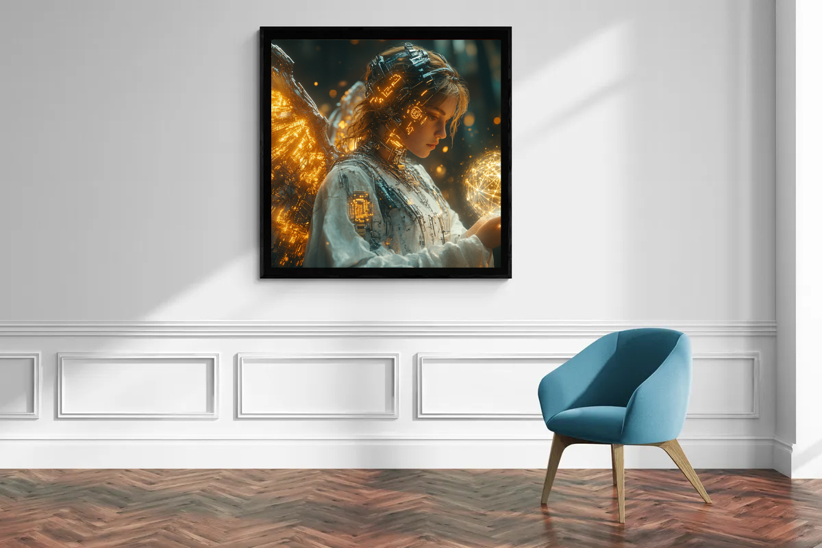 Dieses Werk spricht Liebhaber von Science-Fiction und Fantasy gleichermaßen an und bringt eine mystische, zugleich futuristische Atmosphäre in jeden Raum. „Der Lichtwächter“ symbolisiert Schutz, Wissen und die Verbindung zwischen Menschlichkeit und Technologie.