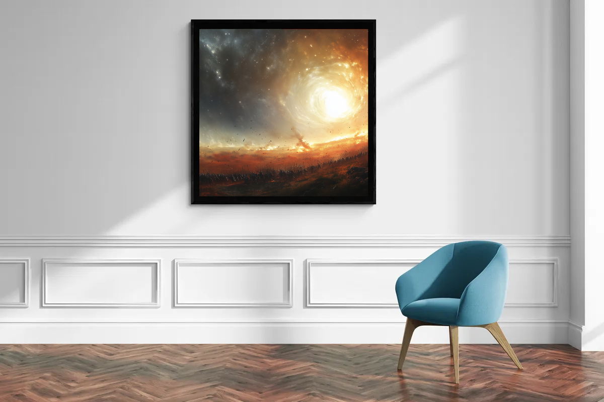 Mit „Der Sturm der Ewigkeit“ bringen Sie nicht nur ein Kunstwerk in Ihren Raum, sondern auch eine kraftvolle Botschaft von Hoffnung, Mut und unendlichem Potenzial. Es erinnert uns daran, dass jeder Kampf, jeder Sturm eine Gelegenheit ist, unser Licht heller strahlen zu lassen.
