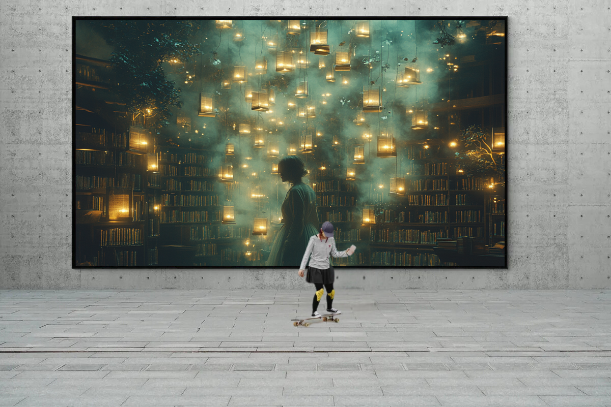 Dieses Werk ist ideal für alle, die eine verträumte und inspirierende Atmosphäre in ihren Raum bringen möchten. „Die Bibliothek der Lichter“ spricht Liebhaber von Fantasie und Mystik an und lädt dazu ein, die Magie der Bücher und die Kraft des Lichts zu entdecken.