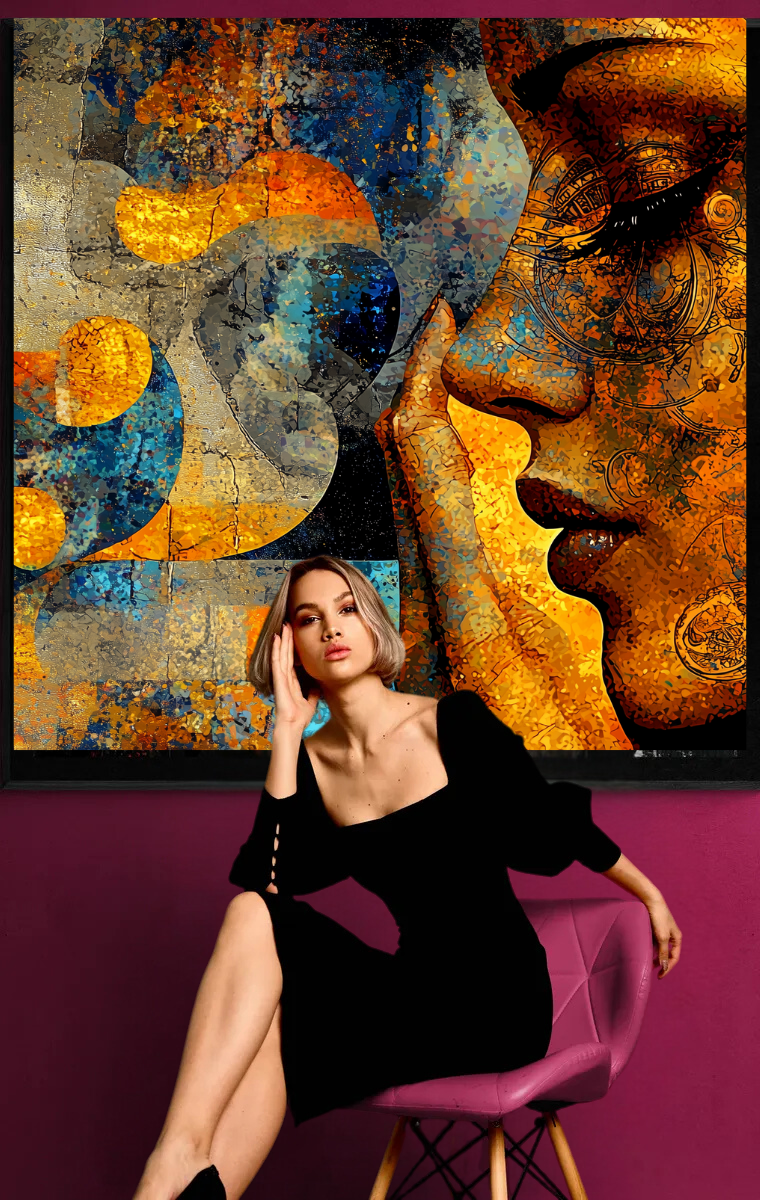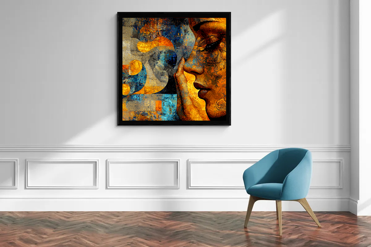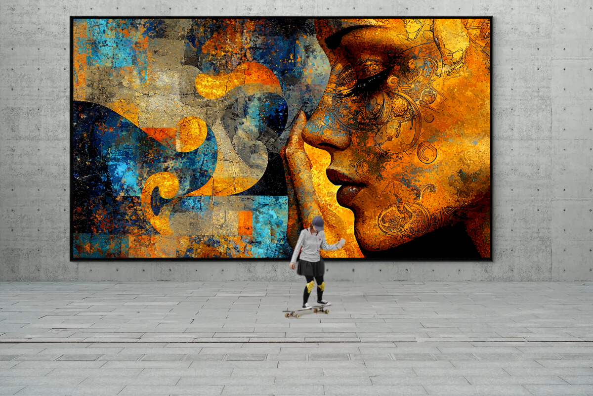 - Lebendige Farbpalette: Orange- und Blautöne stehen im Kontrast und symbolisieren sowohl Wärme als auch Kühle – ein Spiegel der dualen Natur des menschlichen Geistes.