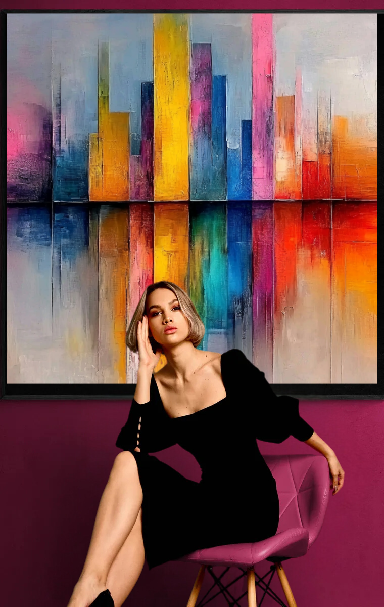 Mit „Farbsilhouette“ holen Sie sich die pulsierende Energie der Stadt in Ihr Zuhause – ideal für Kunstliebhaber, die moderne und farbenfrohe Akzente setzen möchten.