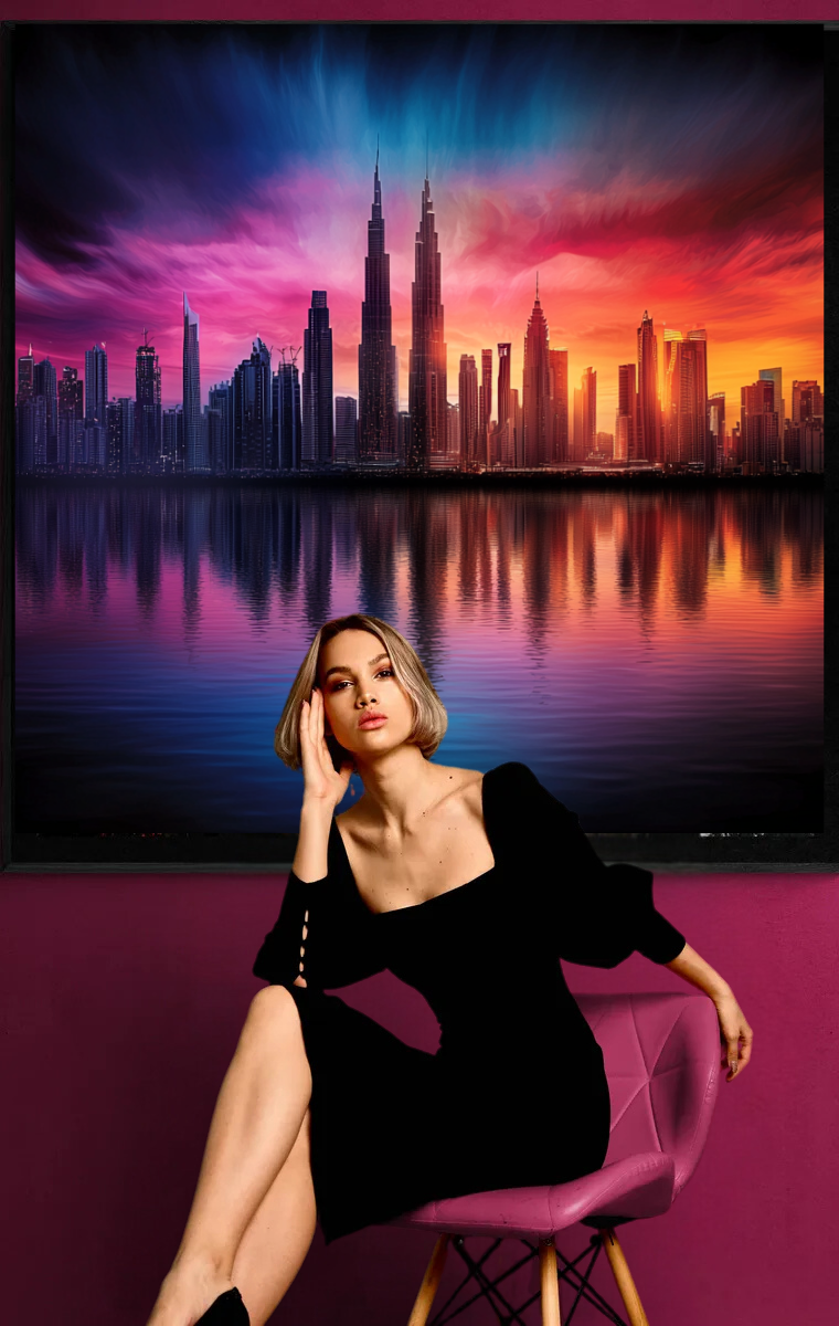 Mit „Feuerhimmel über der Skyline“ holen Sie sich die faszinierende Magie des Abendhimmels und die majestätische Ruhe der Stadt in Ihre Räume – perfekt für Kunstliebhaber, die sich von intensiven Farben und urbaner Ästhetik begeistern lassen.