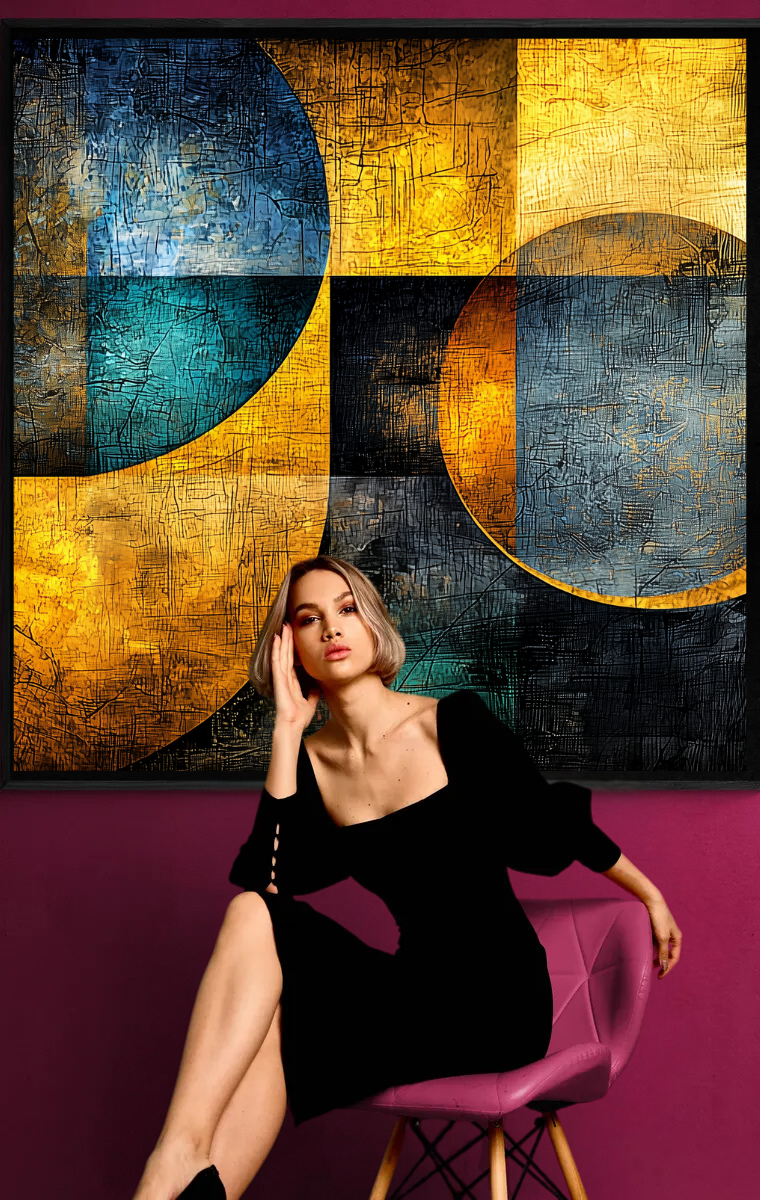 Mit „Geometrie des Lichts“ holen Sie ein Kunstwerk in Ihre Räume, das die Harmonie von Form und Farbe meisterhaft einfängt. Es ist ein Sinnbild für die Schönheit der Präzision und die Kraft der Schlichtheit – ein modernes Statement für jeden Kunstliebhaber.