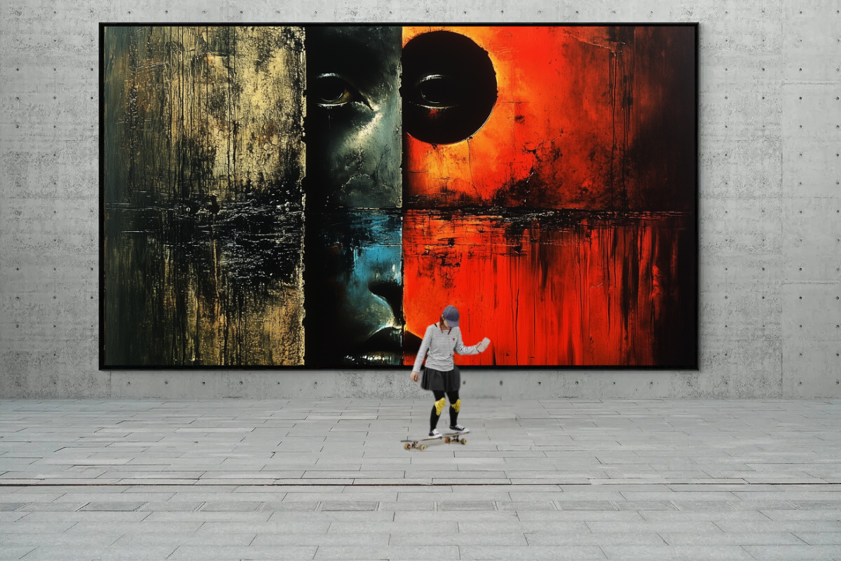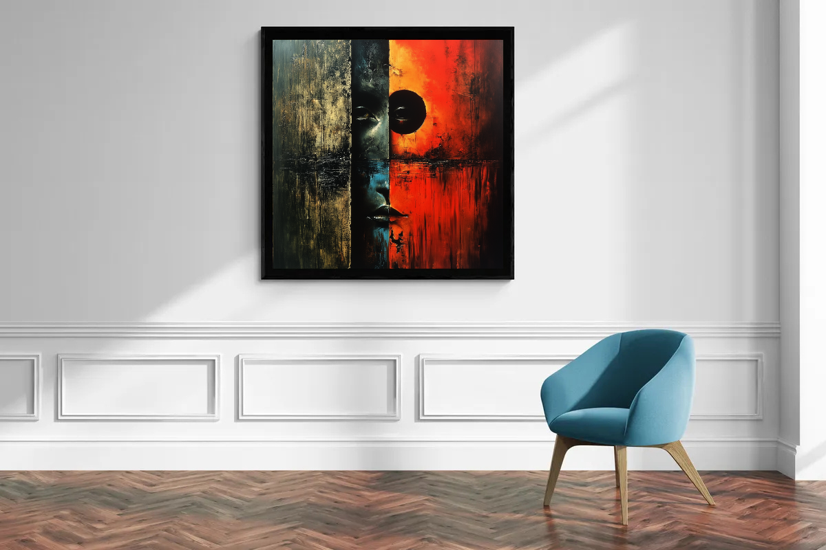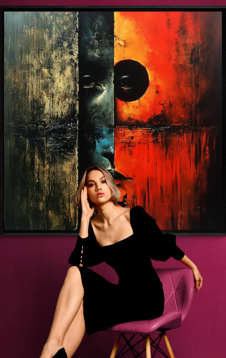 - Wohnzimmer oder Studio: Ein kraftvolles Statement für Räume, die Emotionen und Tiefe ausstrahlen sollen.