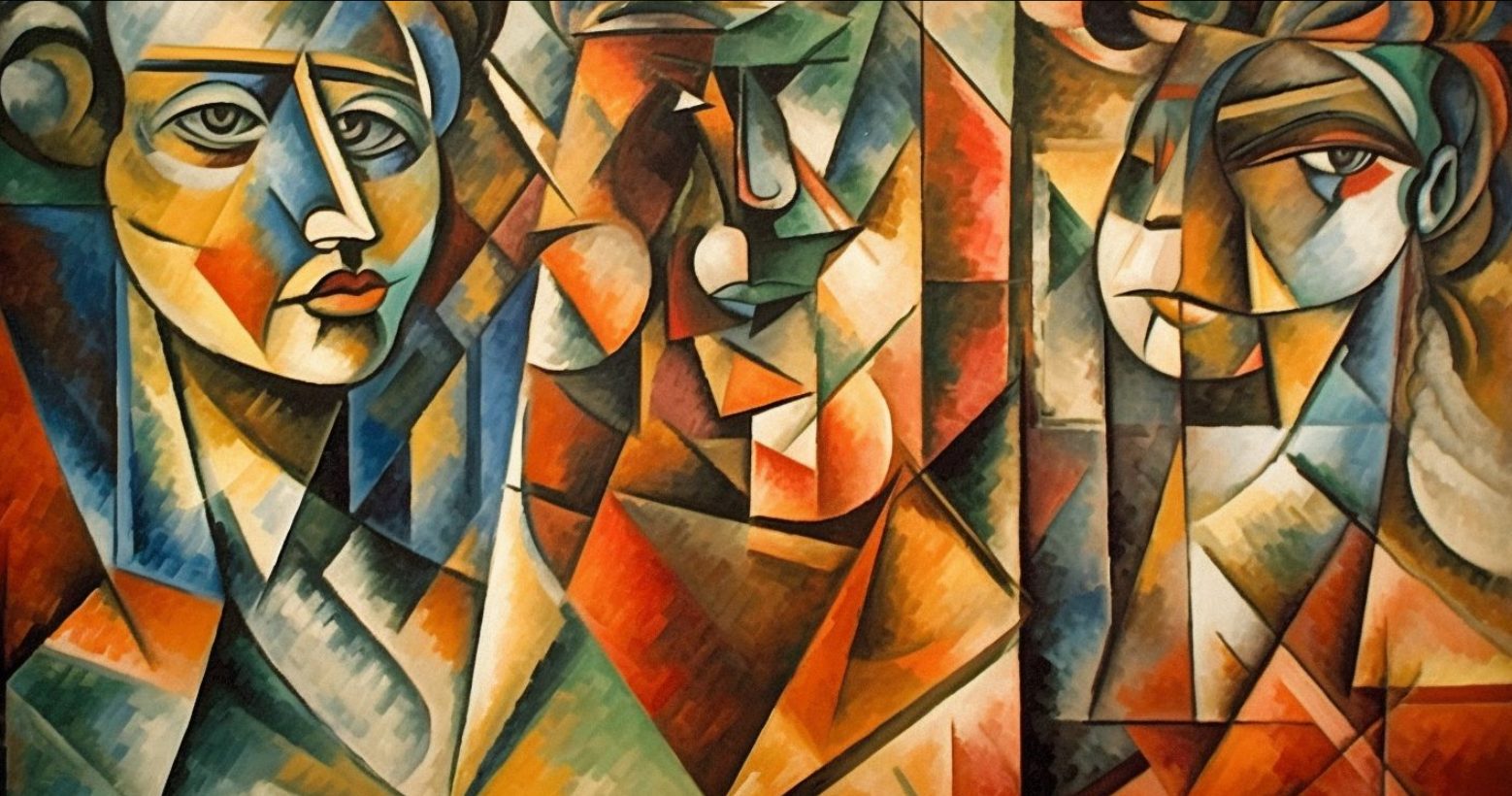 „Kaleidoskop der Gedanken“ – Ausdrucksstarker Kunstdruck im Kubismus-Stil