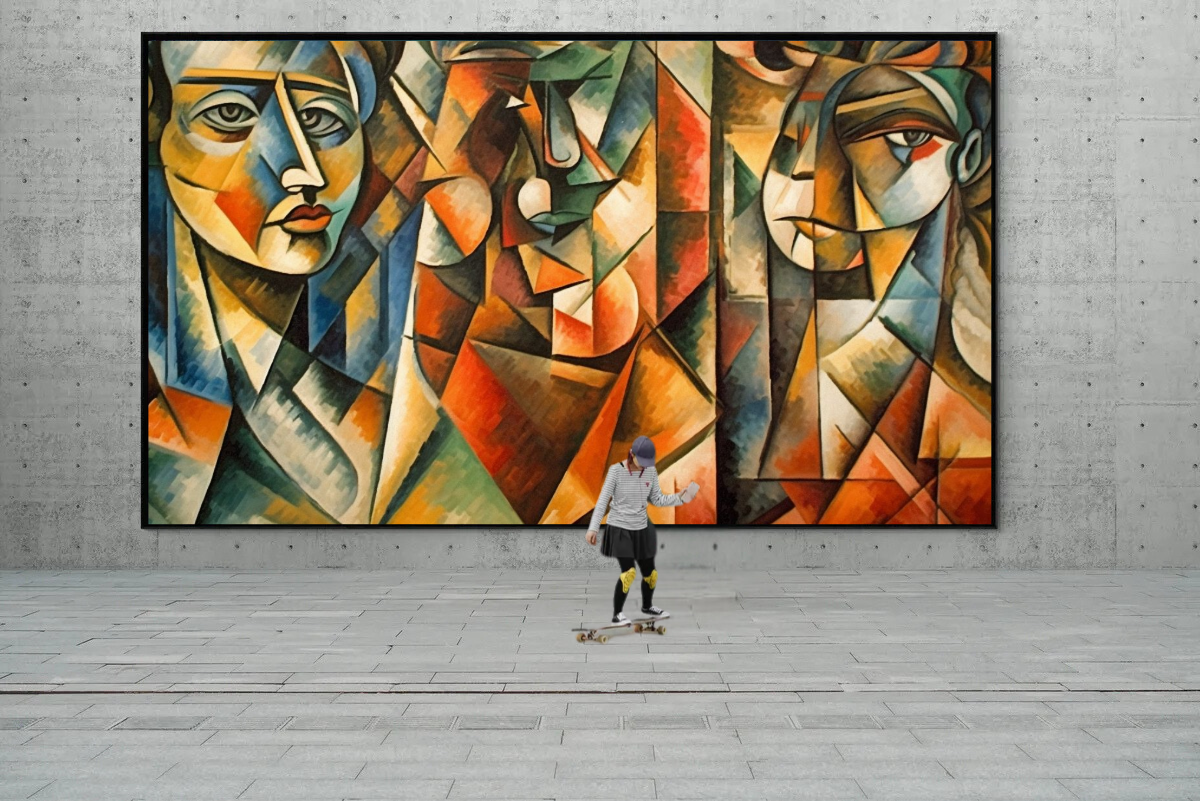 „Kaleidoskop der Gedanken“ ist ein faszinierender Kunstdruck, der die facettenreiche Natur des menschlichen Geistes in einem lebendigen und dynamischen kubistischen Design einfängt. Durch kräftige geometrische Formen und ein reiches Spektrum an Farben erzählt dieses Werk von der Vielschichtigkeit und Komplexität menschlicher Emotionen und Beziehungen. Die abstrakten Gesichter scheinen in einem endlosen Dialog zu stehen und laden den Betrachter dazu ein, seine eigene Interpretation zu finden.