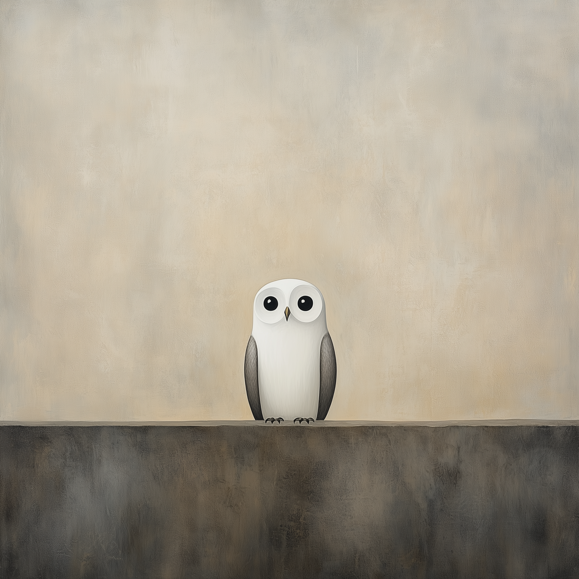 - Minimalismus und Naive Kunst: Die Einfachheit der Darstellung und die Reduktion auf wesentliche Elemente erinnern an den Minimalismus, während die kindlich naive Gestaltung der Eule eine spielerische, freundliche Note verleiht.
