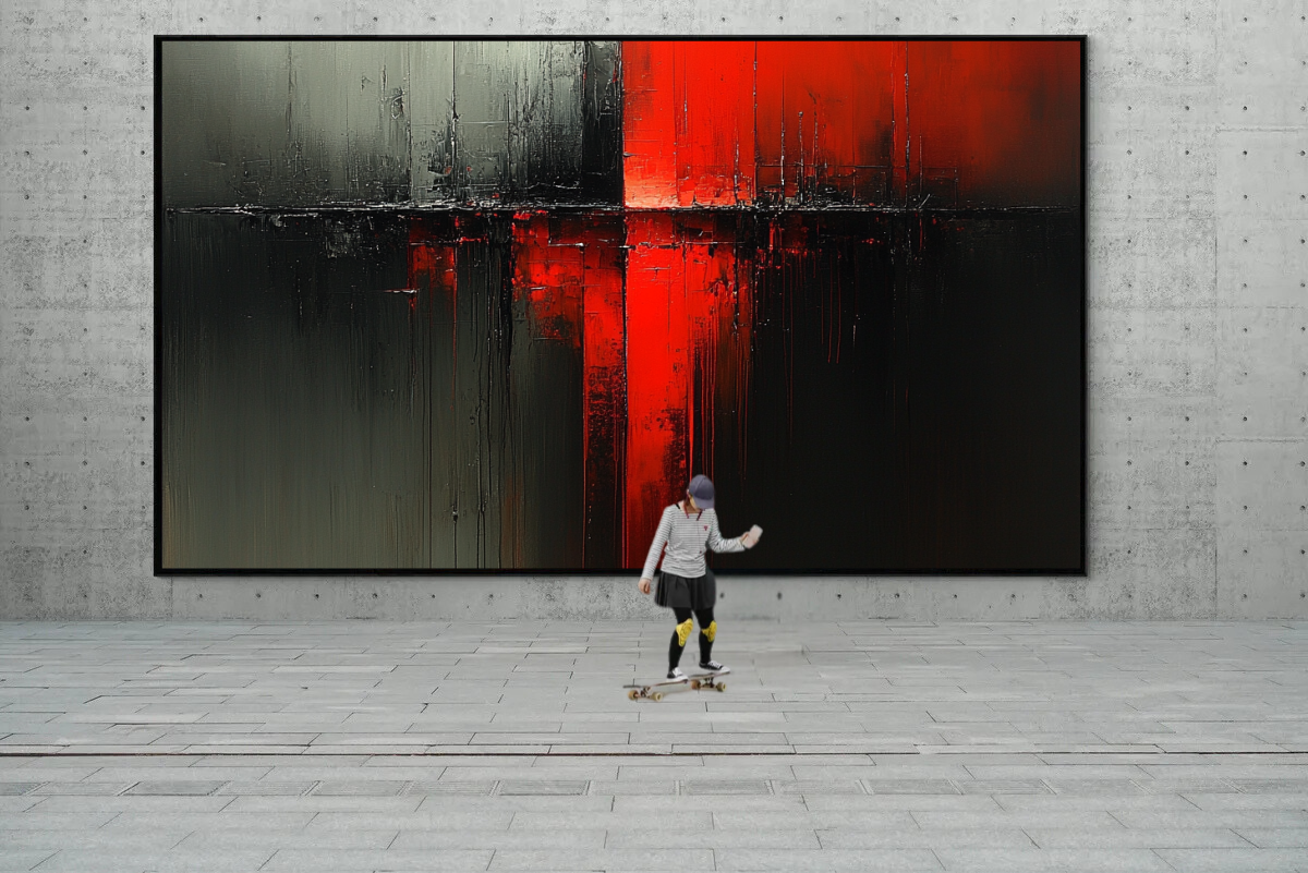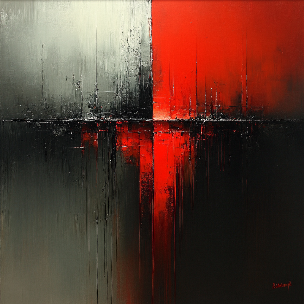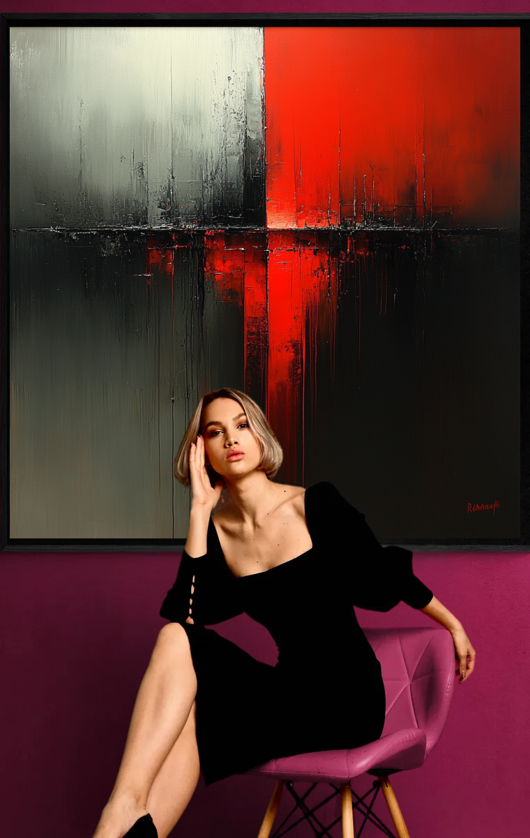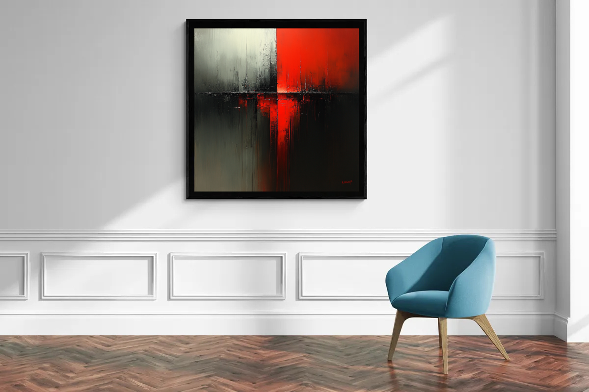„Kontrast der Stille“ – Abstrakte Komposition in Rot und Schwarz