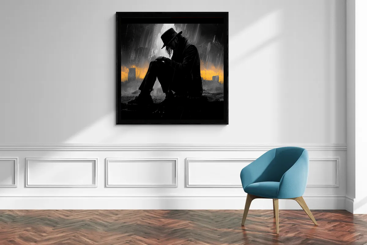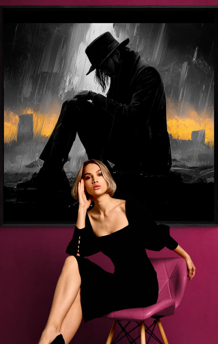 Ein Kunstwerk, das die Seele berührt und die Stille im Chaos der modernen Welt einfängt. „Regenflüstern“ zeigt einen Moment der Ruhe, verborgen in den dunklen Gassen der Stadt. Es ist eine Hommage an die Stärke, die aus Einsamkeit und innerem Nachdenken entsteht, ein Dialog zwischen Dunkelheit und Licht.