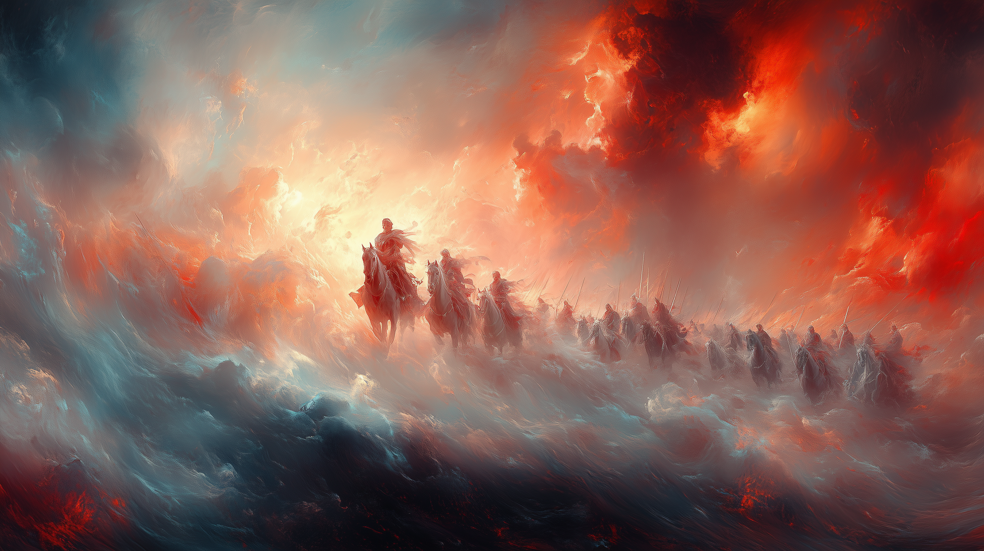 - Die Reiter: Sie symbolisieren Führung, Gemeinschaft und den unerschütterlichen Willen, Widrigkeiten zu überwinden. Ihre Silhouetten scheinen aus den Wolken zu bestehen, als ob sie aus der Essenz von Träumen und Bestimmung geformt wären.