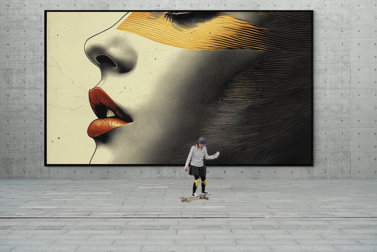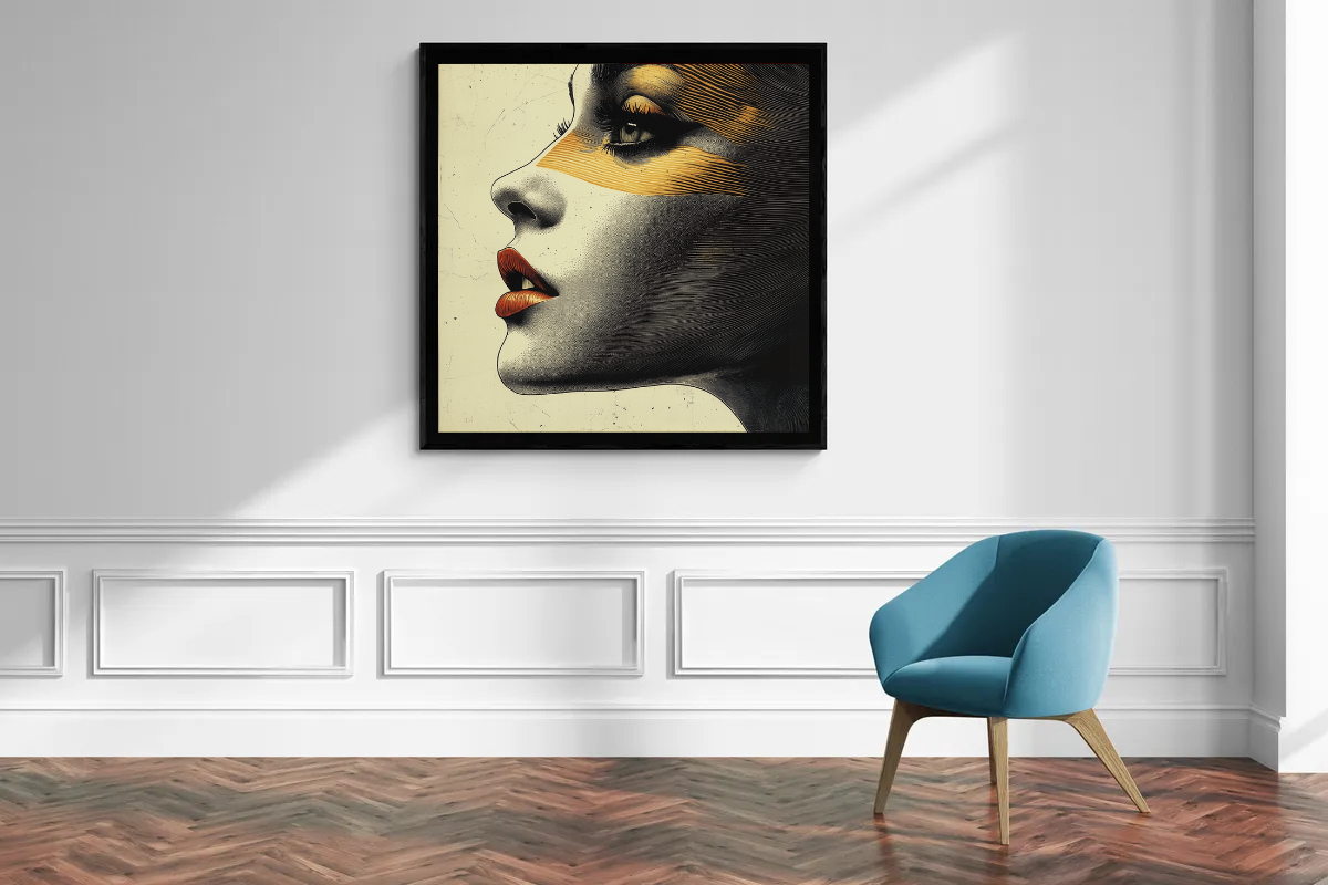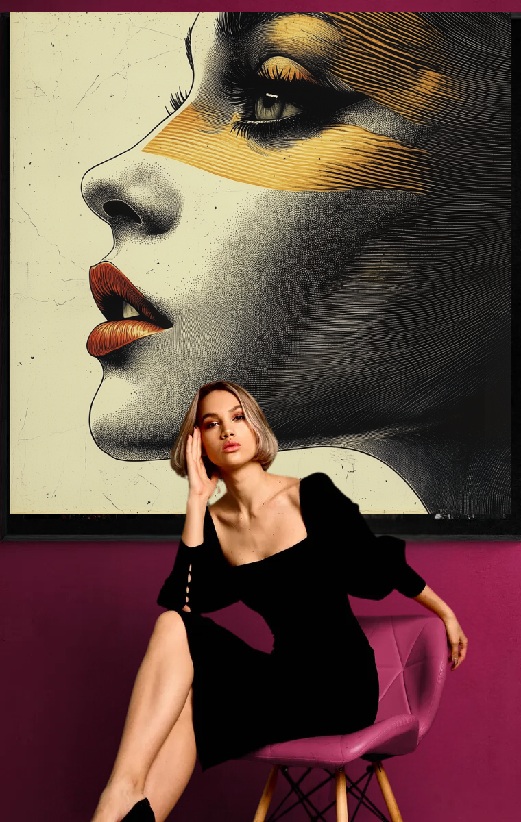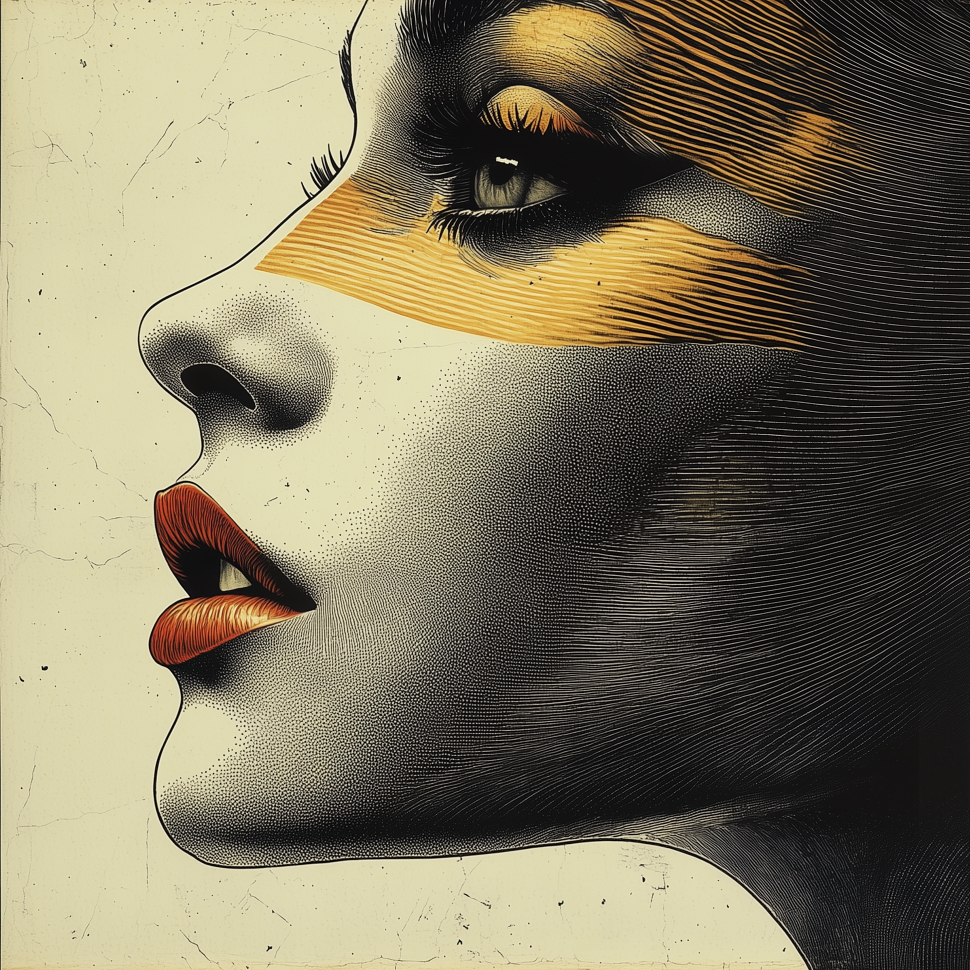 - Das Profil der Frau: Ein Symbol für Anmut, Stärke und Introspektion, das den Betrachter sofort fesselt.