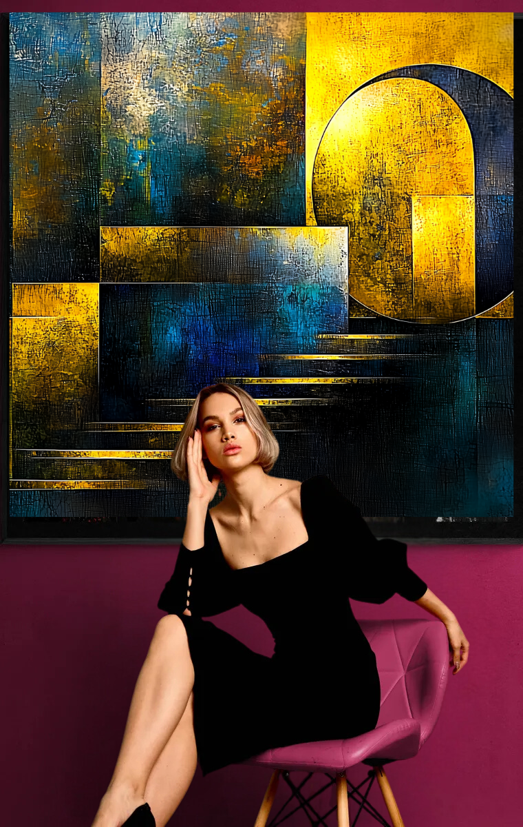 - Strukturierte Flächen: Die texturierten Ebenen verleihen dem Werk Tiefe und eine fast greifbare Haptik, die die Abstraktion erdet.