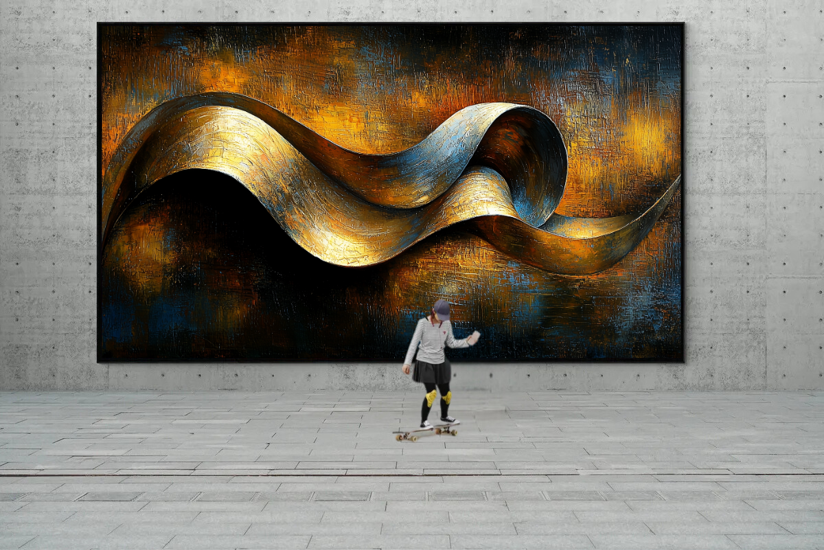 - Abstrakte Skulpturalität: Die dreidimensional wirkende Welle verleiht dem Werk eine greifbare Qualität.